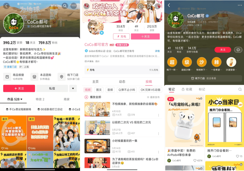 其次,CoCo在抖音、小紅書、快手、B站等平台積極佈局,搭建社羣體系,像交朋友一樣與粉絲平等互動。例如,在B站上,其自有IP“OK兄妹”的動畫視頻,結合流行於B站的梗與用户互動。這些內容不僅拉近了與粉絲的距離,還提升了品牌親和力。