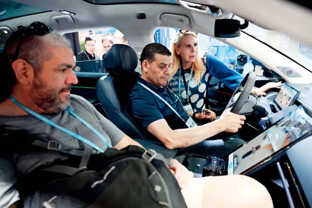 4月15日,廣東廣州市,在137屆廣交會新能源汽車及智慧出行展區,採購商體驗一款新能源汽車。攝影/本刊記者 陳楚紅