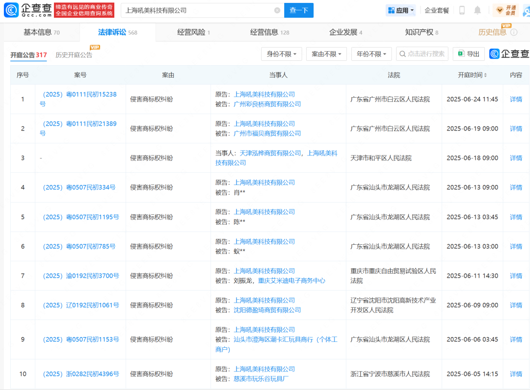 仔細看看案由,米哈遊正在對盜版周邊、內鬼、黑子等侵權行為重拳出擊。光是負責衍生品的米哈遊子公司上海吼美科技,今年開庭公告數量已經過百。