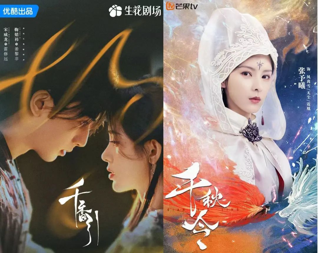 優酷和芒果則各自派出《千香》和《千秋令》,這兩部作品都是由歡瑞打造的,《千香》的男女主分別為宋威龍、鞠婧禕,他們在劇中將攜手破宿命、終換得三界安寧;《千秋令》由張予曦、佟夢實領銜主演,主打“三世甜虐宿緣”,目前播出。
