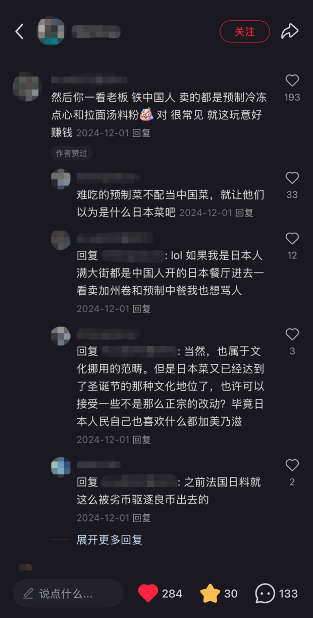 和中國人開的日料店相比,日本人對其"正統性"執念反而成為枷鎖:堅持從日本空運食材炊具,成本高出本土採購60%;清一色日籍員工推高人力開支;執着高端選址維持"清幽神秘",卻流失大眾客源;冷食主導的菜單與法國人熱食習慣產生温差,復購率持續走低。
