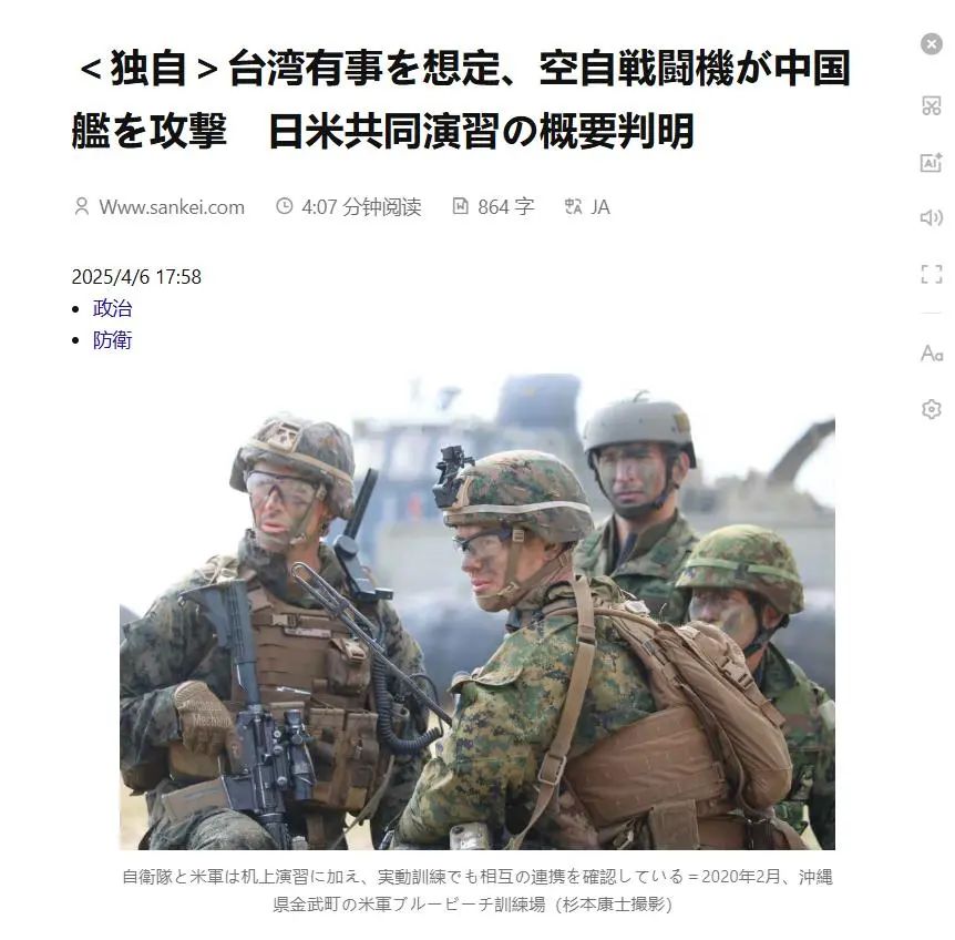 我在開頭這裏給大家複述的這段聽上去就癲勁十足的內容,是我從日本右翼媒體《產經新聞》近日刊登的一篇獨家報道上截取下來的。去年2月,美日兩軍舉行了一場代號“鋒刃-2024”(Keen Edge)的多邊、多軍種聯合演習。這場演習有一個相當值得關注的地方——它是美日兩國在聯合演習中首次全面模擬台海衝突,演習重點旨在研究如何打亂我們飲馬台海的進程,進而阻撓我們的統一大業。