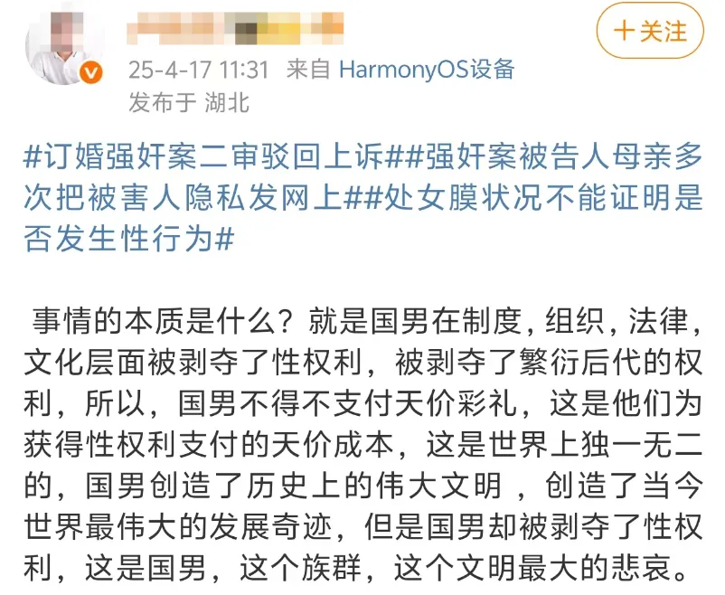 4月16日,山西省大同市中級人民法院對備受關注的“訂婚強姦案”作出二審宣判:駁回上訴,維持原判。一審以強姦罪判處席某某有期徒刑三年。