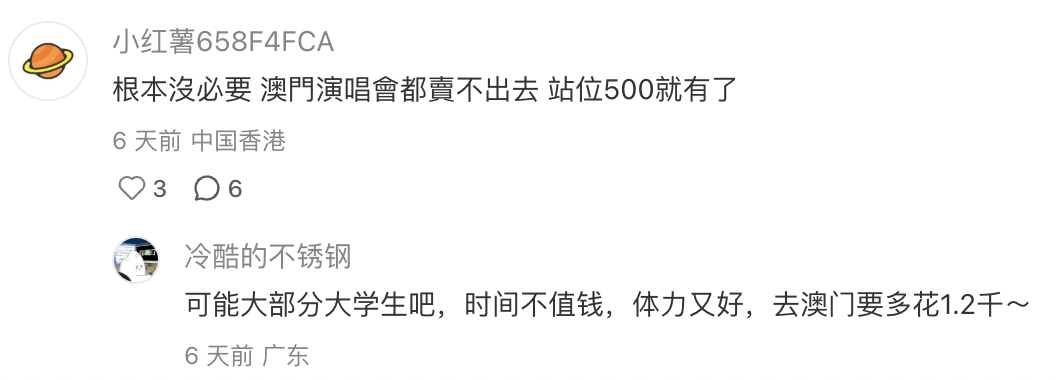 這幾年大家口袋都沒錢,去澳門當然能美美看偶像幾小時,但算上來回住宿交通的花銷,已經超出了大部分人的承受範圍。