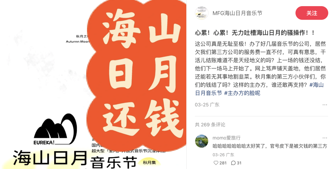 憤怒的粉絲找主辦方維權,最後當然是“主辦方喜提海景房跑路”,官方賬號居然成為第三方打工人的維權貼…