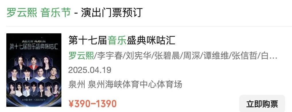 羅雲熙音樂盛世咪咕匯,最高票價1390元;