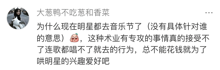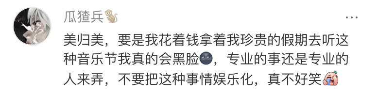 “流量上音樂節”這事已經吵了好幾天了,普通音樂節普通觀眾當然不爽: