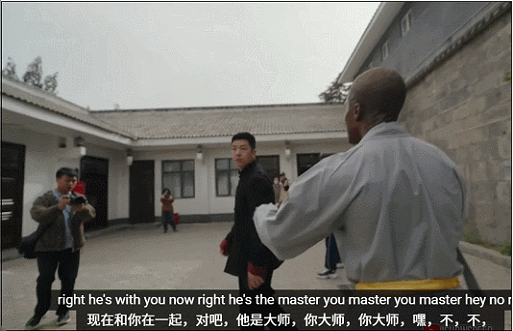 眼瞅着就要變成“功夫黑料”之時,當地文旅聯繫到了少林武術館的梁師傅來救場。當場跪拜求大師指導,一通苦練還有文化指點,最終順利彙報展示得名“釋必德”。