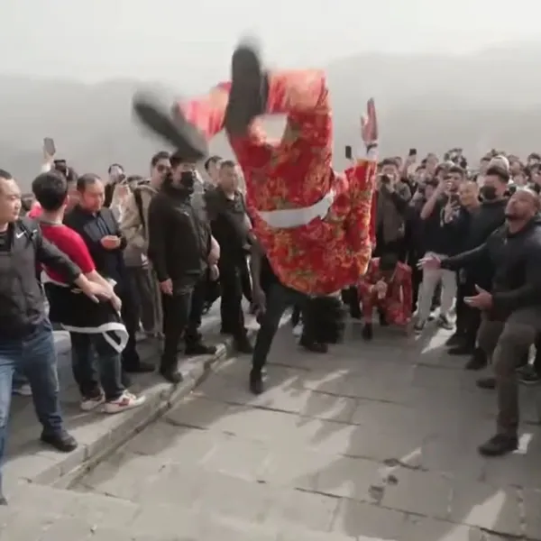 比如,他有一招標誌性的後空翻。挑戰過24小時內跳後空翻最多次數吉尼斯世界紀錄,雖然失敗了,但仍然在14個小時裏跳出了660個。而且隨時隨地無前搖就能跳,在電視節目現場跳過,在巴拿馬高樓的玻璃地板跳過,在危地馬拉的“上帝之手”跳過,包括這次在萬里長城。