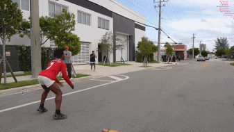 另一次是拍了個原地起跳,跨越時速45英里駛來的蘭博基尼。各種博主逐幀分析了視頻,也有人提出特效嫌疑,直到他放出多角度的機位視頻,展現自己不止真跳還跳了好幾次。(然後就因為危險動作示範又被封了)