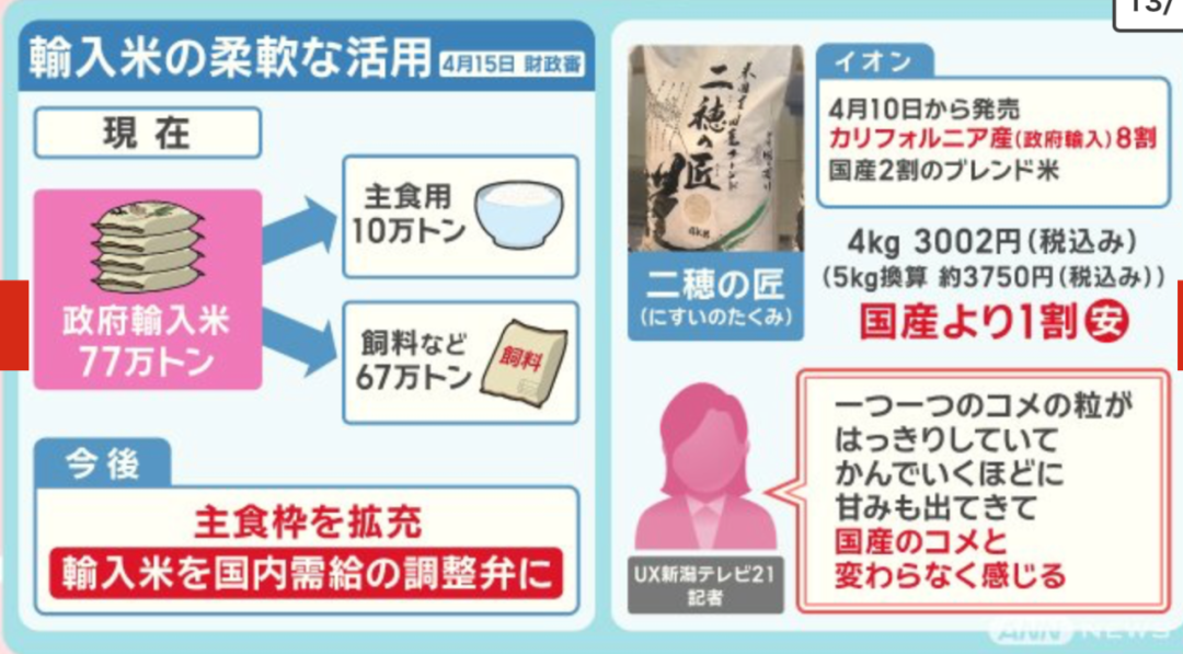 不過日本農林水產省對此興趣不大,固執認為只要投放儲備大米、等到7月新米上市,貴米問題就能迎刃而解。