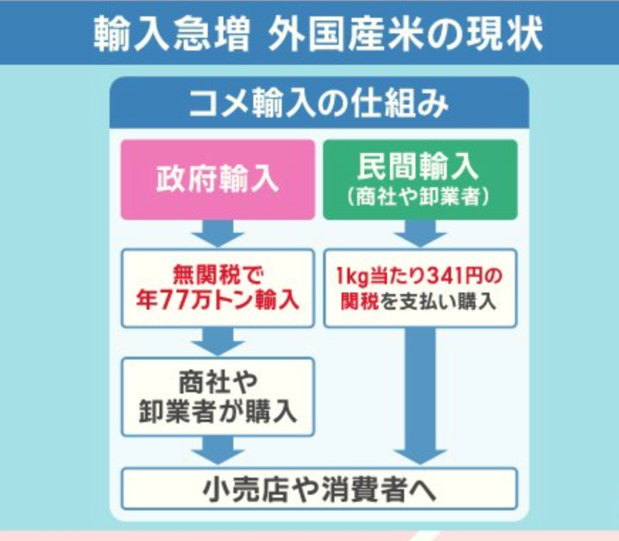 事實上,日本對進口大米設置了約200%高關税壁壘。對於政府進口的77萬噸大米實行零關税,但對於民間的進口大米,則徵收每公斤341日元的關税。