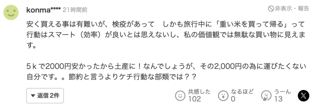 也有日本網友坦言,這種扛大米回國的行為,其實是得不償失的。