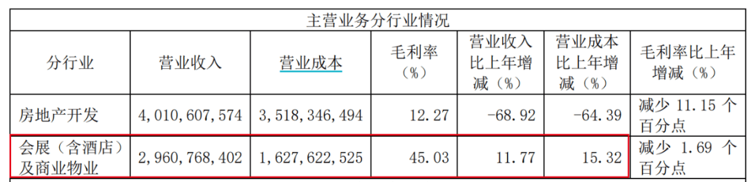 2024年,其會展(含酒店)及商業物業營業成本同比上升15.32%,導致毛利率較2023年同期減少1.69個百分點至45.03%。