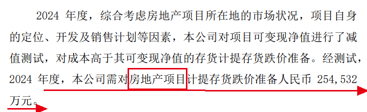 彼時,公司就對房地產項目計提存貨跌價準備9.05億元、計提投資性房地產資產減值準備1.38億元。