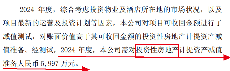而虧損主要與北辰實業對當地產相關項目大幅計提資產減值有關。2024年,公司對房地產項目計提存貨跌價準備25.45億元、對投資性房地產計提資產減值準備5997萬元,合計約26億元。
