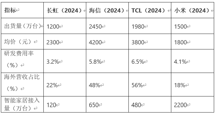 長虹雖早在2016年推出CHiQ系列智能電視,但其自主研發的虹領金系統2024年用户日均使用時長僅32分鐘,不足小米PatchWall系統的三分之一。更尷尬的是,長虹與華為鴻蒙、谷歌Android TV的合作始終停留在淺層適配,2024年智能家居設備接入數僅120萬台,不足海信“生態圈”的五分之一。