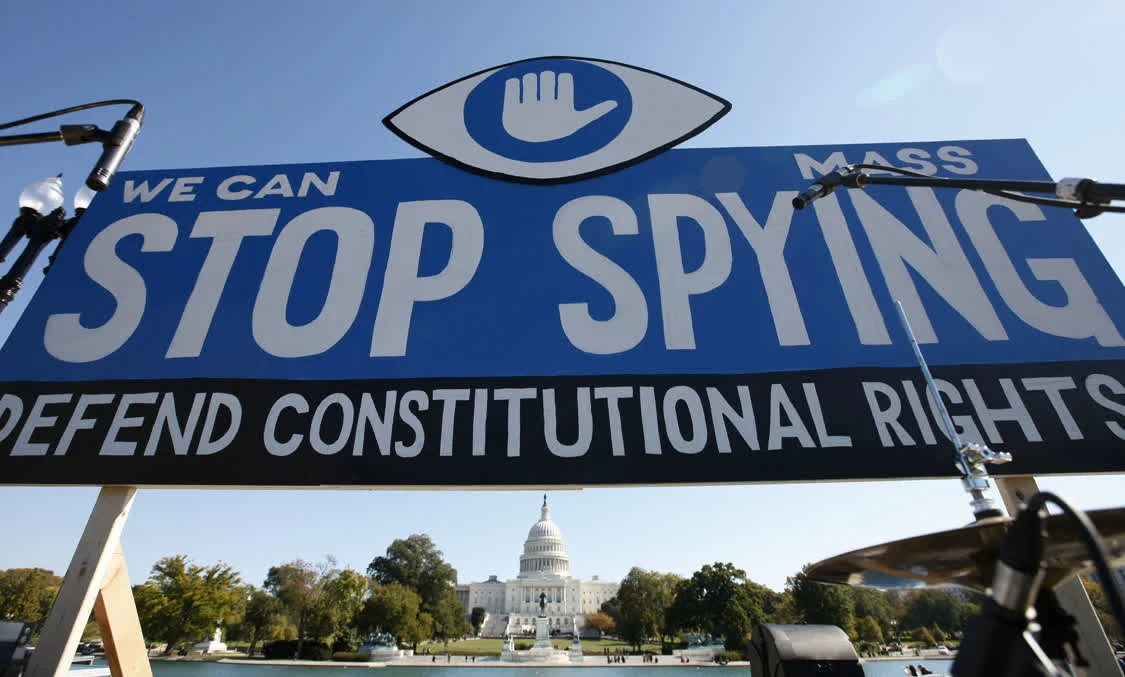 2013年10月26日,在美國首都華盛頓,一個反監控的標語牌豎立在國會大廈前。新華社記者 方喆 攝