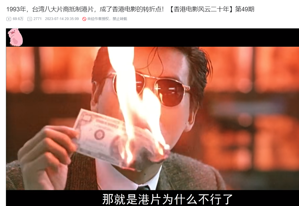 然而到了90年代,港片的台灣市場也終於逐漸凋零,這又是另外一個話題了,主要原因有2方面:一個是台灣文化市場開放,好萊塢大片大舉入侵;一個是港片之前賣片花給台灣片商,惹惱了台灣市場
