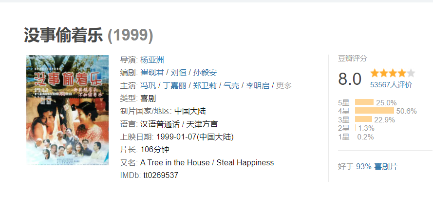 或者再舉一個典型的內地學院派電影,馮鞏主演的《沒事偷着樂》