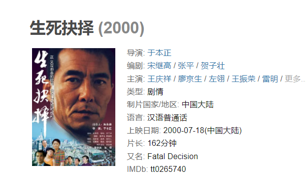 如果説這個票房還有爭議,那麼2000年《生死抉擇》票房破億沒有任何問題