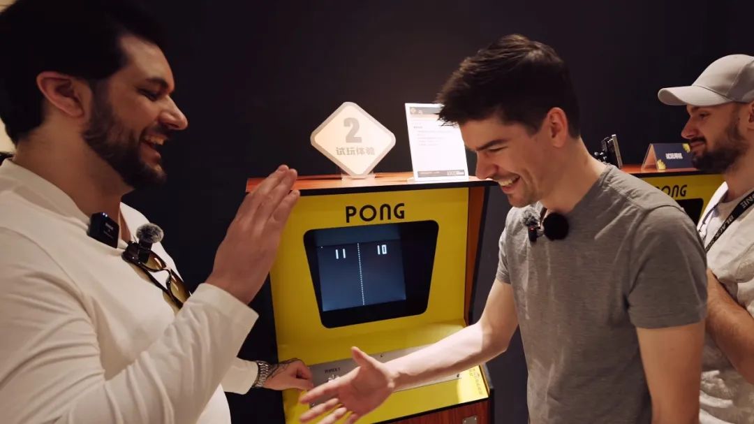 對於那些比自己還“老”的藏品,主播們也難掩好奇和欣喜之情,每個都要湊近仔細看看,不服輸的兩人更是要在電子遊戲鼻祖的《Pong!》機台上一較高下。