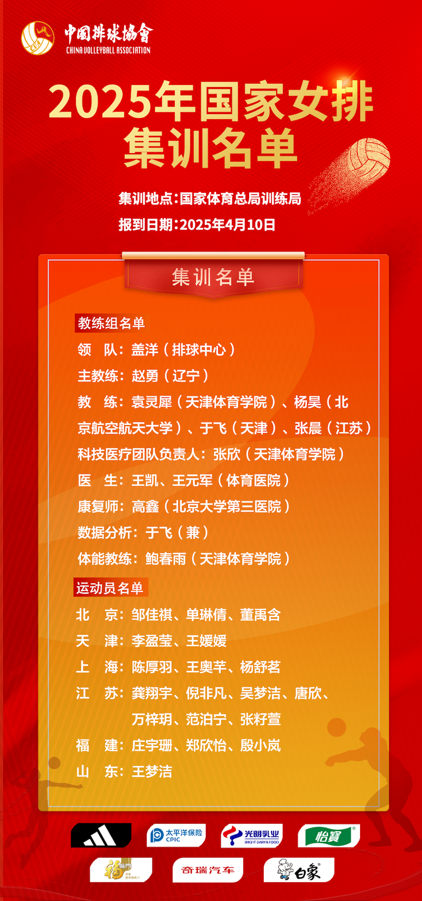 4月10日,中國女排正式官宣了洛杉磯奧運週期的新任主教練,來自遼寧省的趙勇取代蔡斌,並走馬上任。