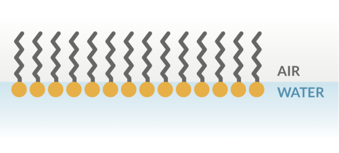 自發條件下,熱力學體系都是由不穩定朝向穩定的平衡態變化,因此,能夠降低表面張力的因素可以使得體系變得更穩定。對於表面活性劑分子而言,極性基團的親水性使其儘可能進入溶液本體,非極性基團的疏水性則使其儘可能逸出液麪, 從而使得液麪的表面活性劑分子呈現出豎直排列的趨勢。