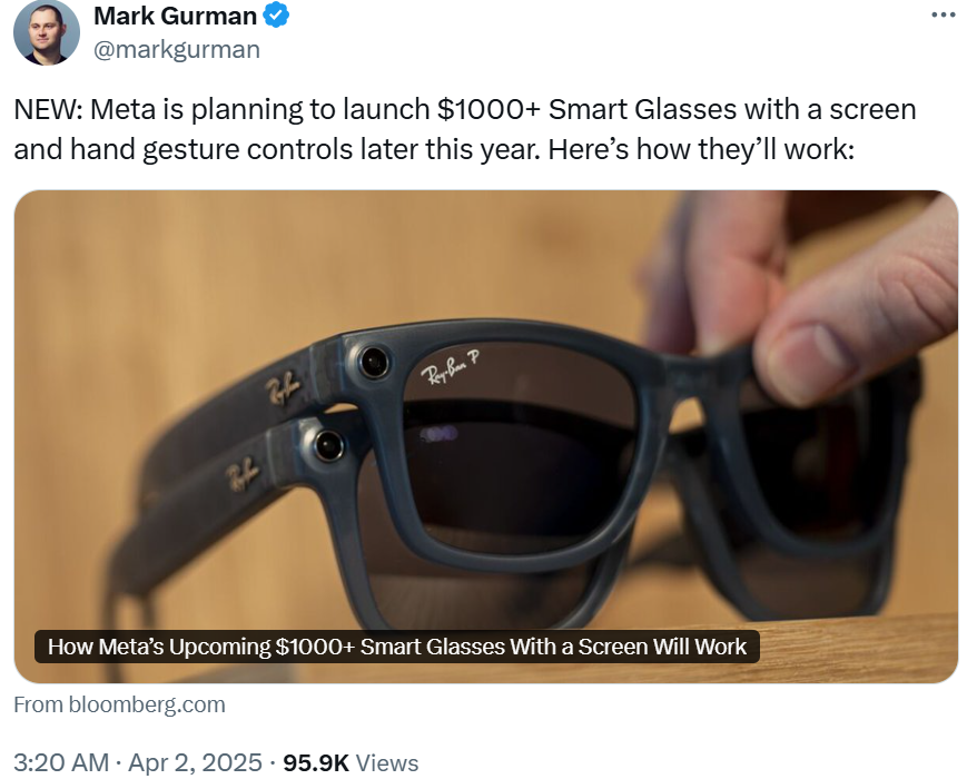 4月初,Meta官宣計劃發佈新眼鏡,代號Hypernova