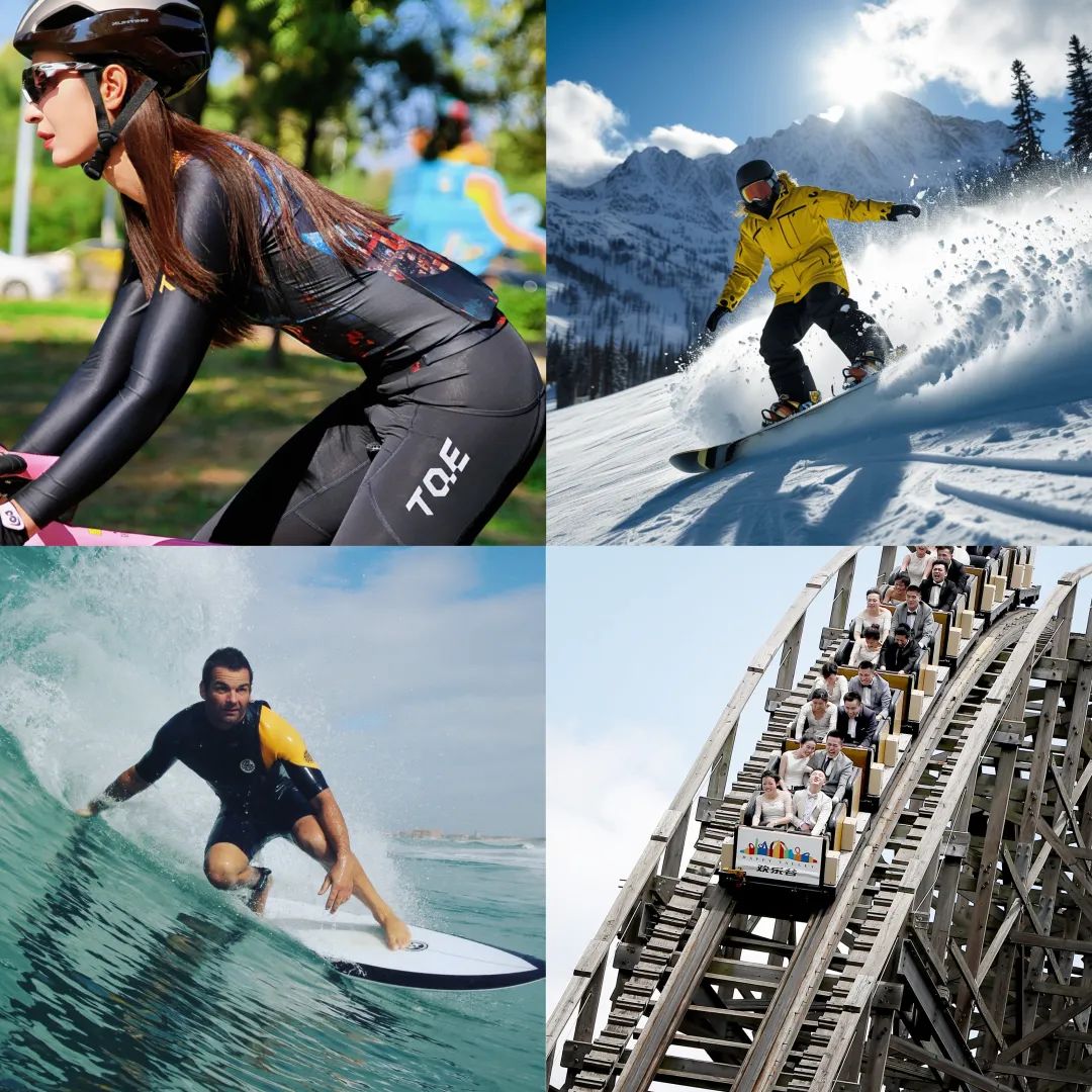 以户外為主的騎行眼鏡,場景覆蓋騎行、登山、滑雪、運動(打籃球)、水上運動