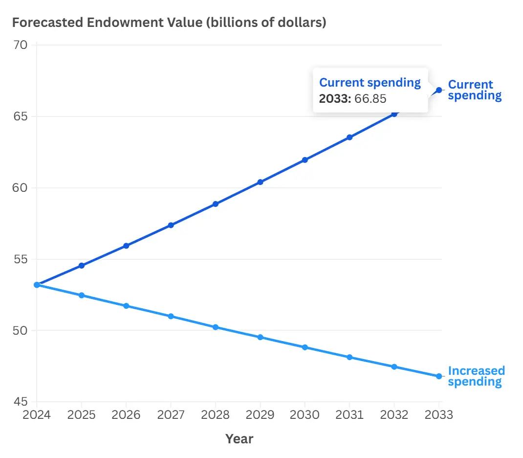■哈佛校報《深紅》上最新文章,認為撤資和威脅之下,如果哈佛長期用捐贈基金支出取代聯邦撥款,並且撤資速度超過資金增長速度,捐贈基金就會縮水,對哈佛影響不利