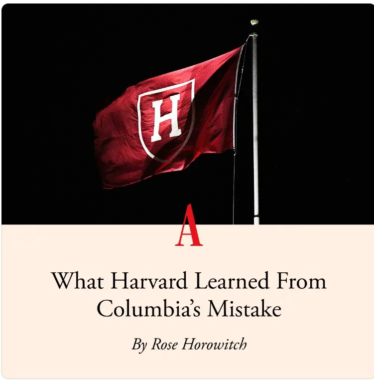 ■《大西洋月刊》3天前撰文,哈佛從哥大的錯誤中吸取到了足夠多的教訓