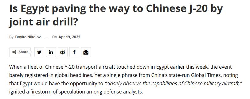 還有外媒大膽猜想,中國會不會向埃及派出殲-20