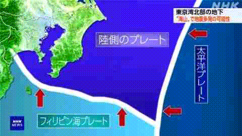 並表示,關東地區地下構造複雜,菲律賓海板塊和太平洋板塊俯衝到陸地板塊之下,有多個“地震巢點”。
