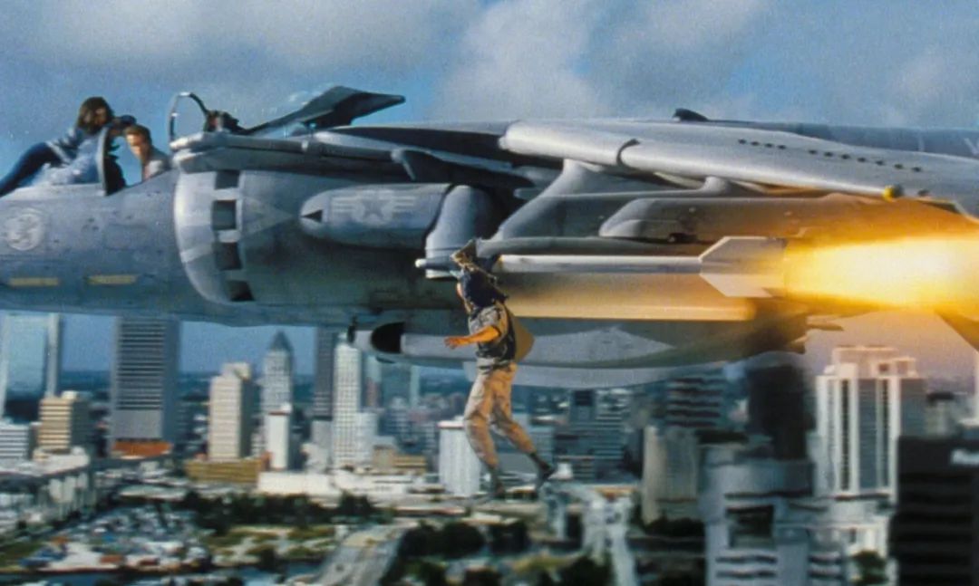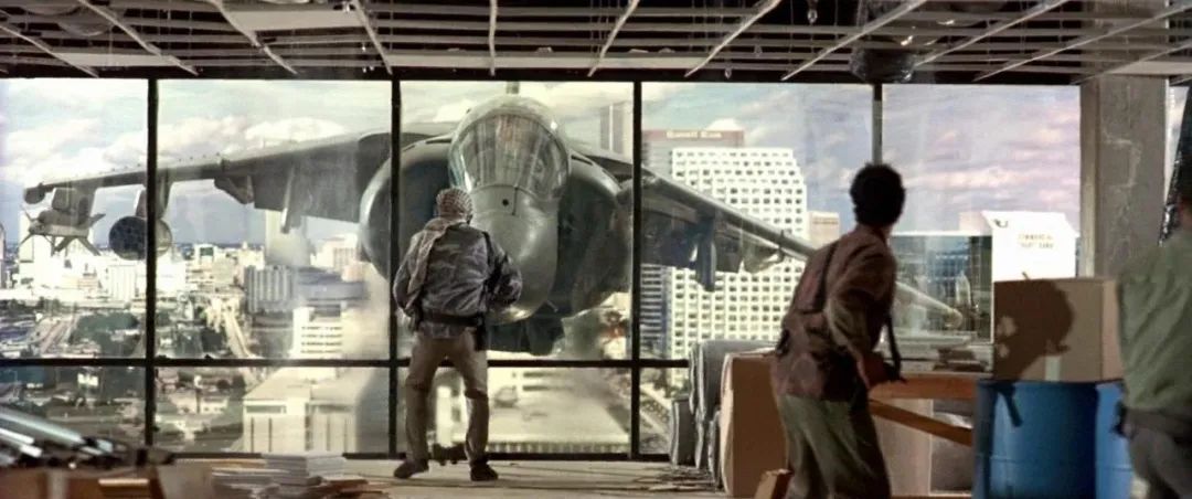 在影片最驚險的“高空戰機撞擊大樓”場景中,觀眾會看到一個搞笑的畫面: