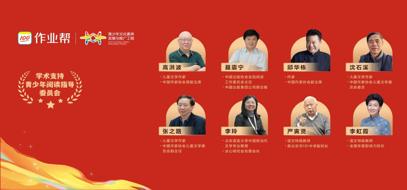 2021年,“十四五”規劃綱要明確“深入推進全民閲讀,建設‘書香中國’”,青少年閲讀作為全民閲讀的基石意義愈加凸顯。此次作業幫大閲讀攜手青少年文化素養髮展與推廣工程、青少年閲讀指導委員會,匯聚中國作家協會原副主席高洪波,中國出版協會全民閲讀工作委員會主任聶震寧,中國作協副主席邱華棟,著名兒童文學作家沈石溪,著名兒童文學作家張之路,北京語言大學教授李玲,北京市101中學原副校長嚴寅賢,語文特級教師李虹霞八位專家,以權威視角遴選書目,以學段特徵分級設計內容,力圖破解“選書難、讀不深”的普遍痛點,為青少年打造一套科學、系統的閲讀推薦體系。