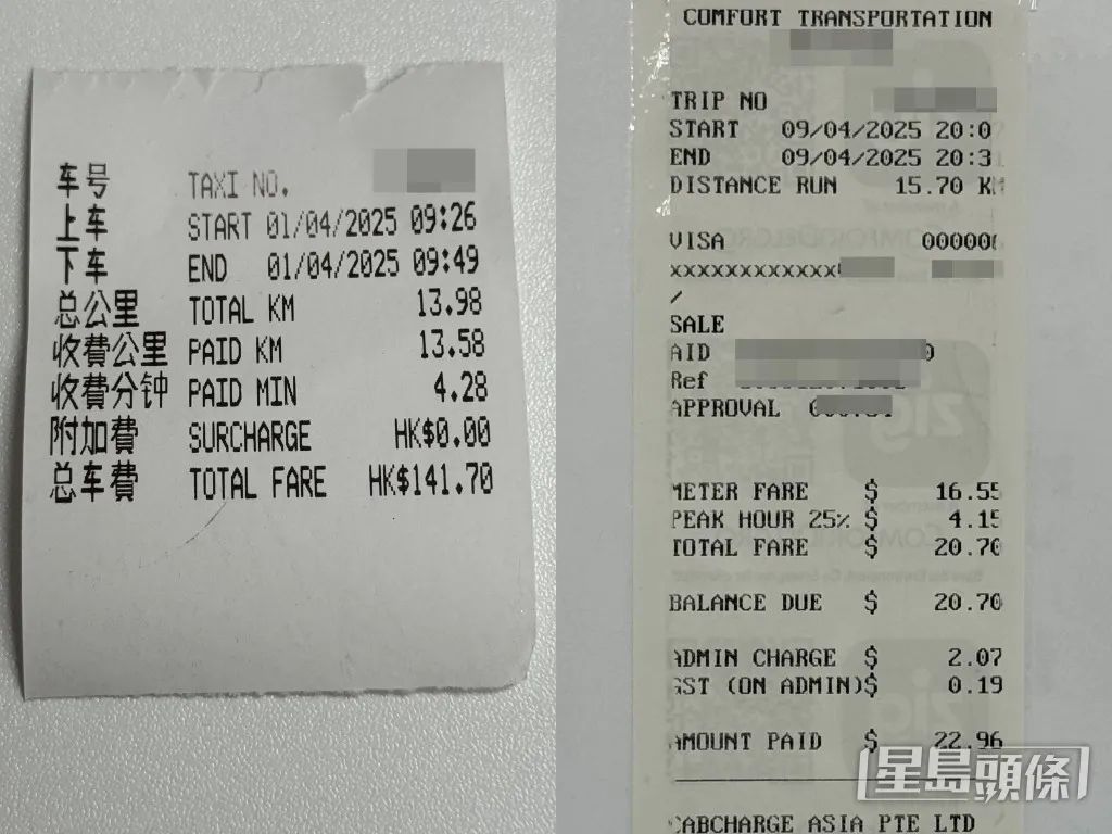 記者日前在新加坡乘的士,車程24分鐘,總路程15.7公里,車資約98港元,即使加上繁忙時間25%額外收費,也只共約136港元。若計一般車資,相約路程下,香港的士收費比新加坡貴近五成。據全球數據庫Numbeo統計,世界各地95個國家及地區中,香港的士車費排第44位,每公里收費約1.28美元;新加坡排70位,每公里收費約0.74美元。