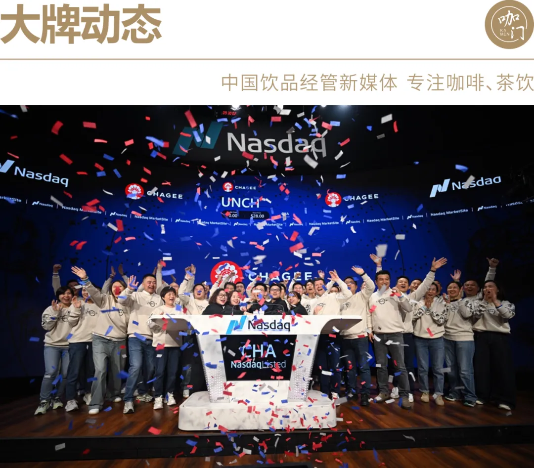 北京時間17日晚上9點半,霸王茶姬一線員工代表、加盟商代表、高管及投資人代表齊聚納斯達克共同敲鐘。隨後,霸王茶姬(股票代碼:CHA)以59億美元市值高調登陸美股。