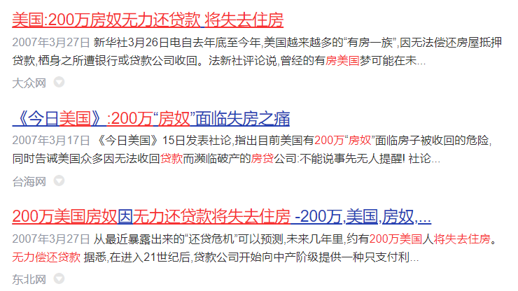 經濟高度繁榮,物價指數很高,很多人就受不了了,於是美聯儲就開啓了加息模式,然後經濟就逐漸的開始變冷,很多人就開始找不到工作了,賺不到錢了……於是,很多借了大量貸款的人就沒有還貸款了,再加上房價暴跌,於是就引發了一場經濟危機。這就是“次貸危機”的大概過程。