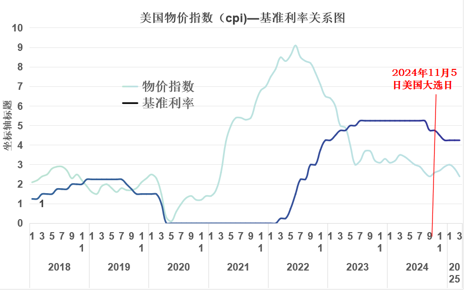 2024年特朗普捲土重來,這時的美聯儲當然要阻擊特朗普了,於是在大選日之前強行降息——降息是為了幫助哈里斯。