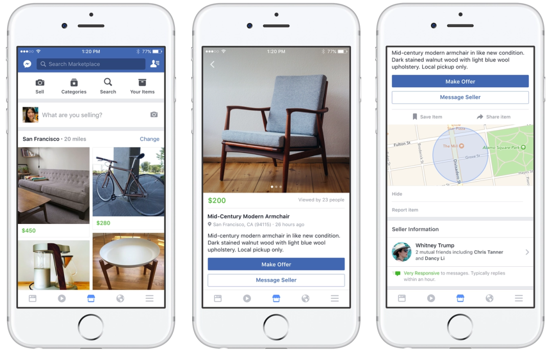 Marketplace 依託的是 Facebook 搭建起的本地社交網絡,用最簡單粗暴的方式連接了社區內的買家和賣家,買賣雙方看看對方 Facebook 主頁,就能建立起樸素的信任感。