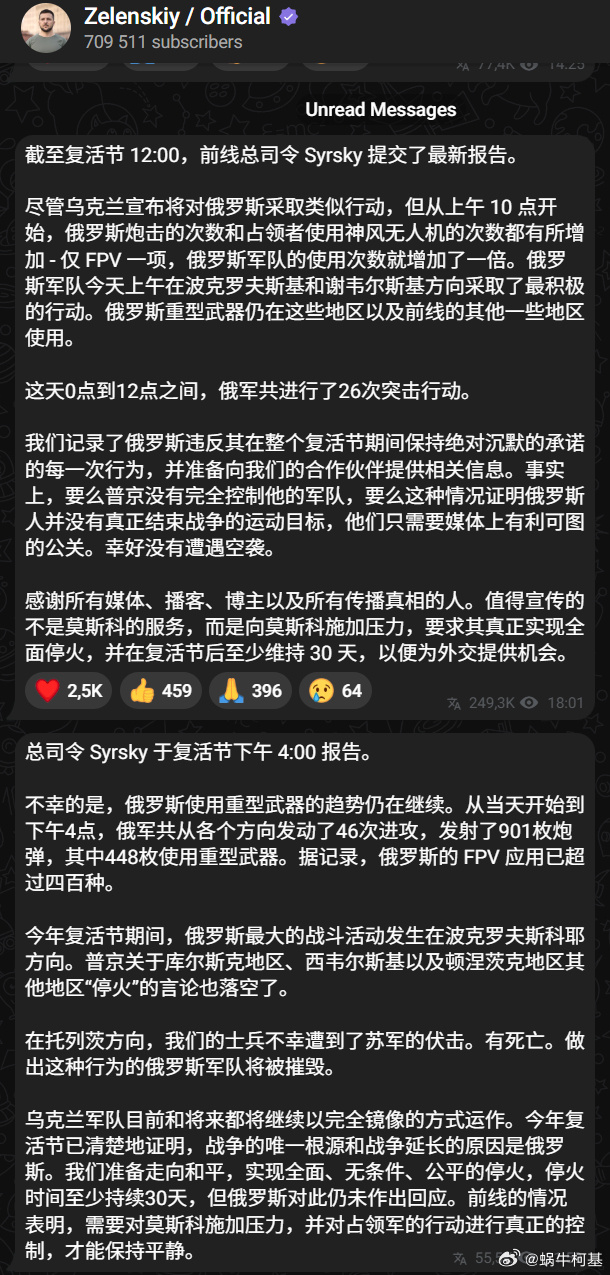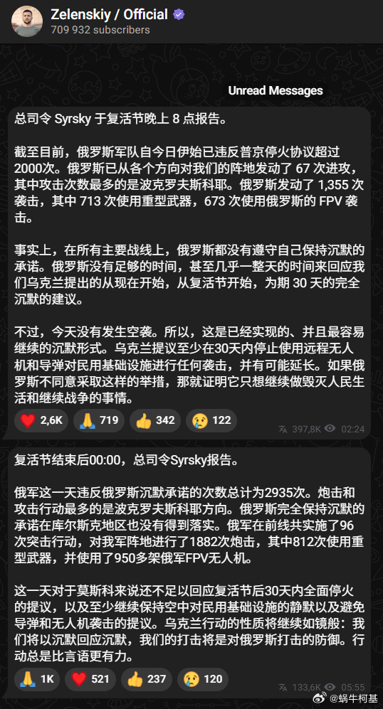 但即使在復活節期間,基輔政權也沒有慶祝這一節日。此外還在班科瓦使用了HIMARS,違反了停火協議。