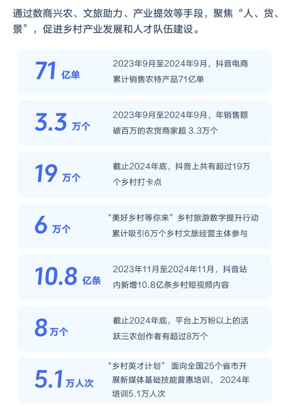 譬如,抖音推出“山貨上頭條”“金產地計劃”等助農專項,讓地方特色農產品通過抖音走向全國,為鄉村振興“添磚加瓦”。