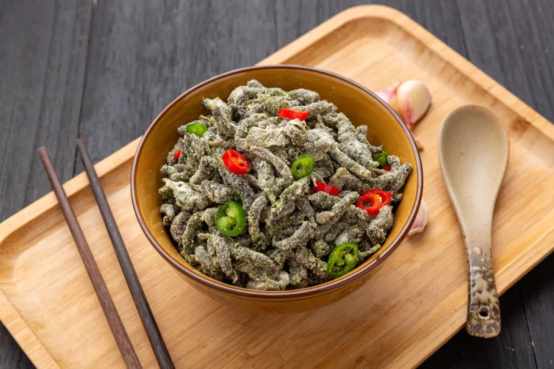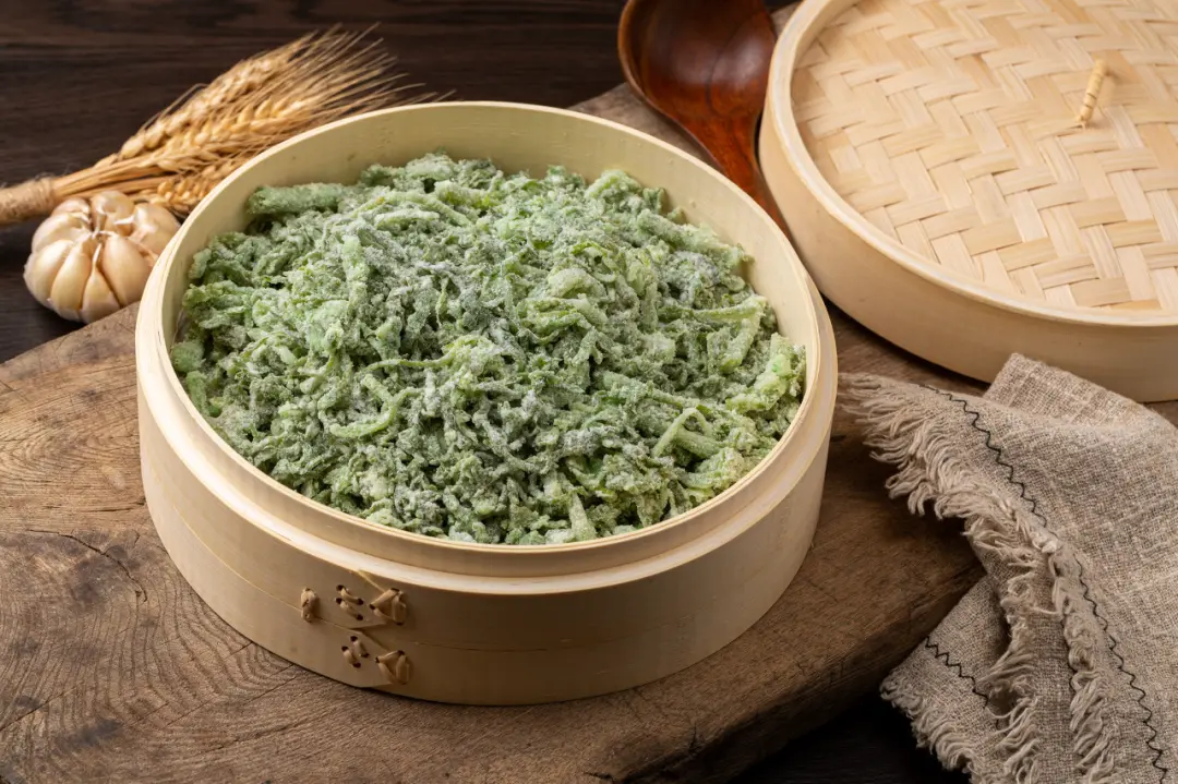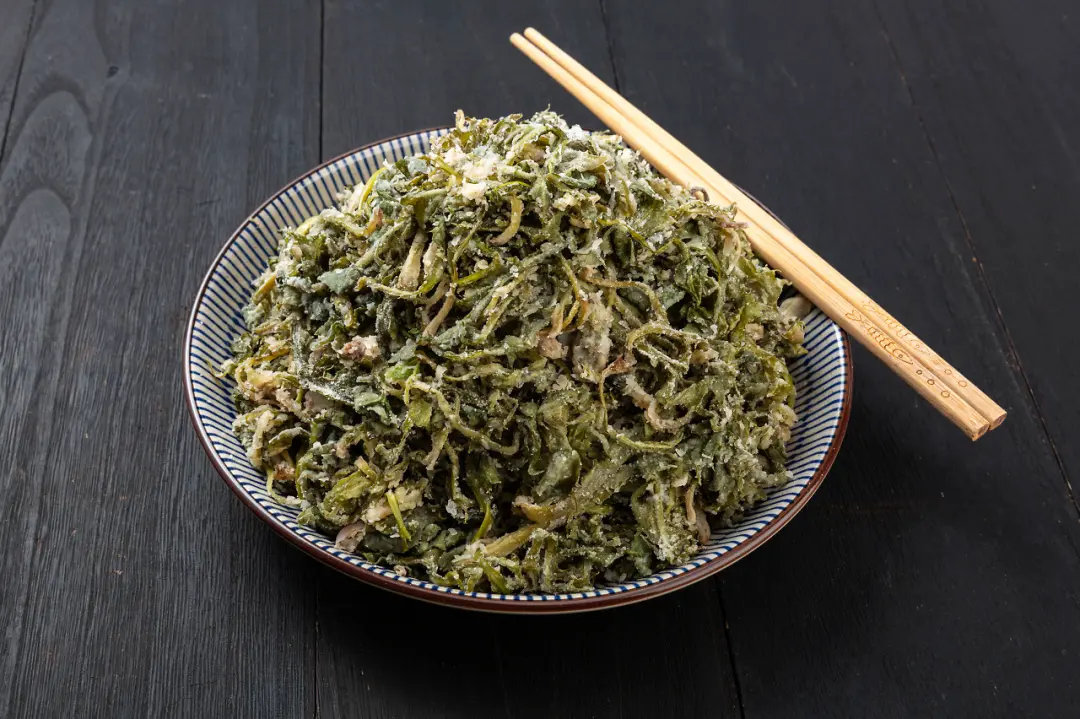 其中最常用的烹飪方法是蒸:將麪粉裹在野菜上,先上籠屜蒸熟後,或澆上鮮辣的蒜泥汁,成為一道爽口涼菜;或下鍋加蒜苗、韭菜等炒制後,成為一道熱菜。