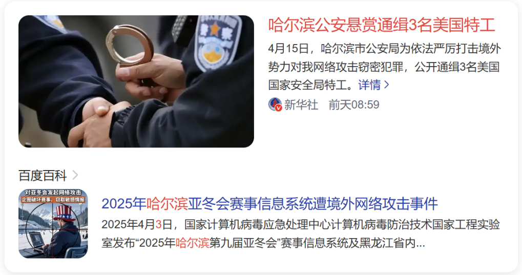 這場“信息戰”的主戰場就是2025年亞冬會,其共計遭受境外網絡攻擊27萬餘次,黑龍江省能源、交通、水利、通信等關鍵基礎設施也遭受攻擊。經過溯源,這次網絡襲擊已經確認是美國國家安全局組織,“核心操盤手”就是被通緝的三名“美國特工”。