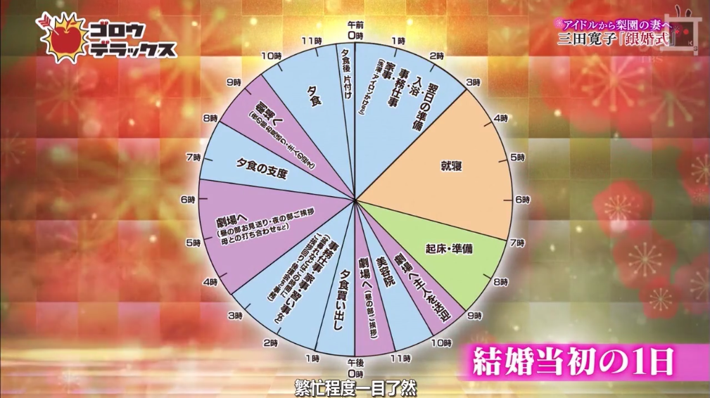 丈夫只需要負責台上的演出,而台下的一切都是妻子的工作。既要準備演出的衣服、便當,還要和工作人員們搞好關係,同時還要保持優雅美麗的外表,不能失了臉面。這樣一天忙完,睡覺時間就只剩4個小時了。