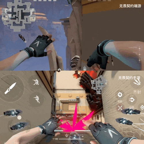 而在體驗過兩次測試後,能發現《無畏契約手遊》正試着從多方面解決這些問題。除了畫質上的高度還原外,讓我有些意外的是,一些在端遊中看上去頗為複雜的操作,手遊實現起來也不差。
