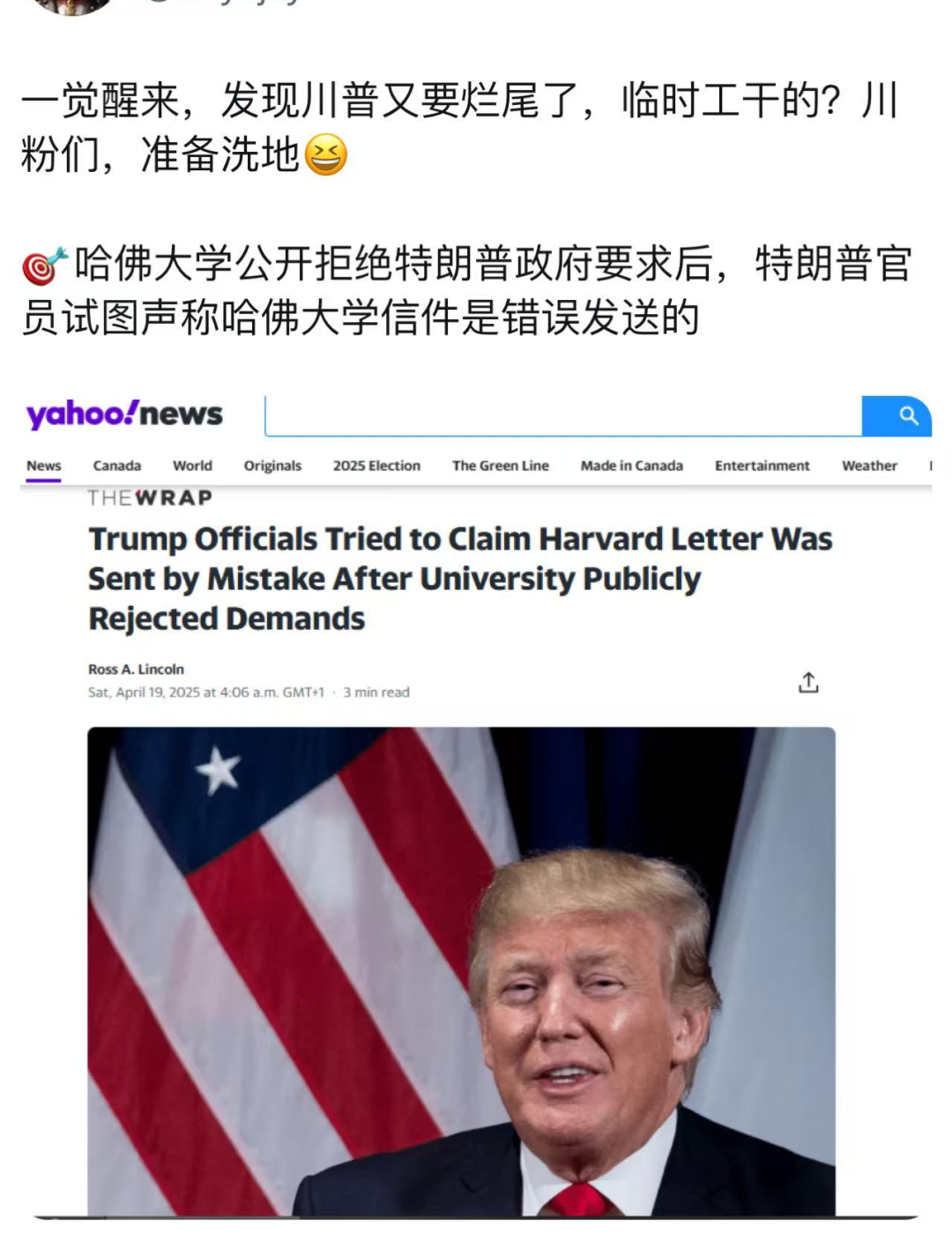 正當人們為哈佛的末日捏一把汗時,特朗普卻先跪了:
