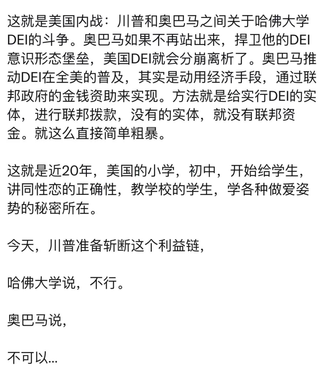 過段時間競爭對手掌權,哈佛就會在灰燼中重建,DEI捲土重來。