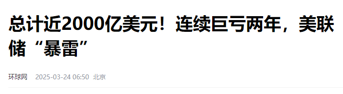 比如,2023年美聯儲虧損了1145億美元,2024年美聯儲又虧損了776億美元(約合5600億元人民幣)。